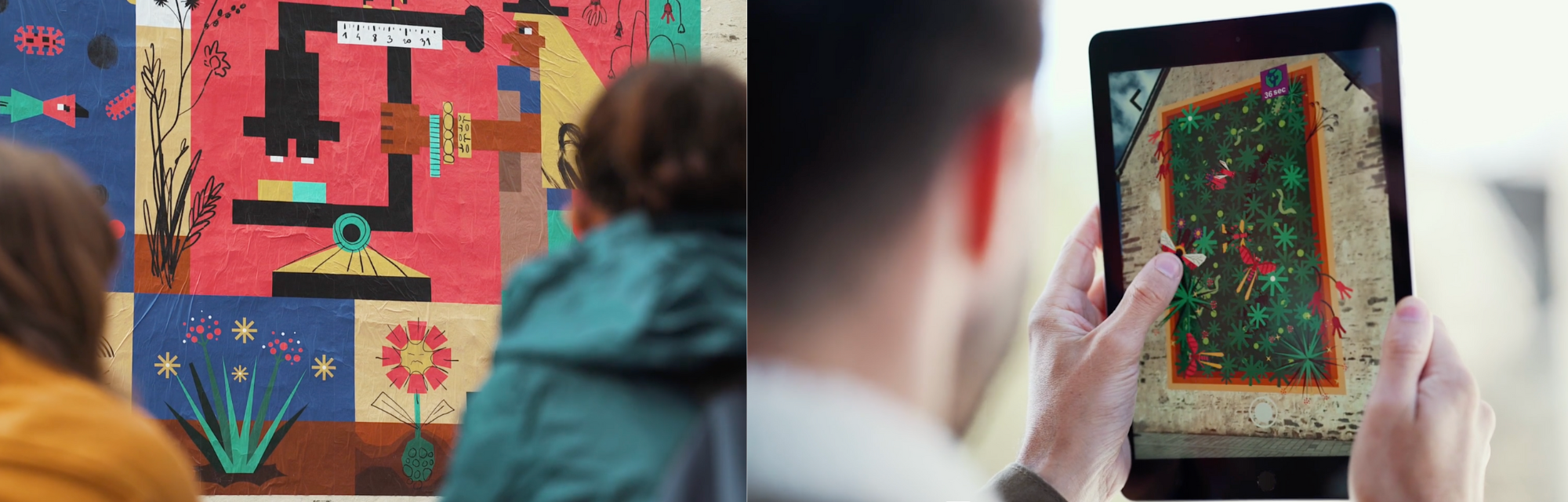 A interatividade com os espectadores é materializada aqui por um pequeno jogo em realidade aumentada, desdobrando outra faceta da narração. A animação de realidade aumentada oferece uma passagem da superfície plana de um mro para um universo 3D abundante, povoado por uma multiplicidade de espécies interdependentes; animais, insetos, organismos vivos e micróbios que formam um ecossistema frágil.